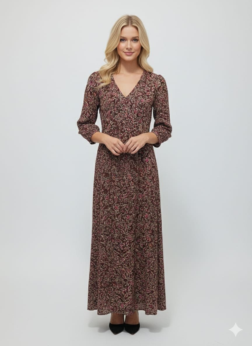 BONOBO robe longue droite fluide marron