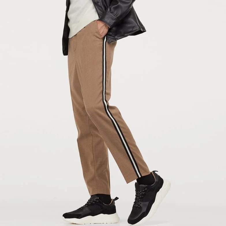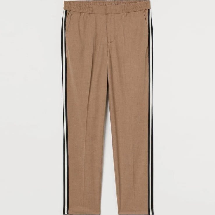 H&M pantalon beige à rayures latérales, coupe slim